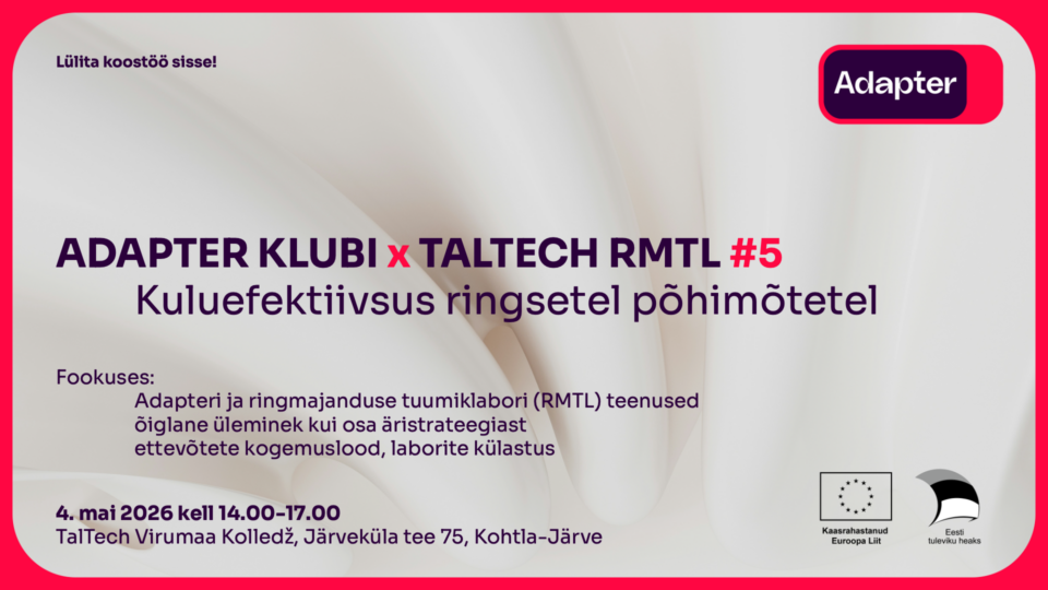 Adapter klubi #5 x TalTech RMTL: Kuluefektiivsus ringsetel põhimõtetel
